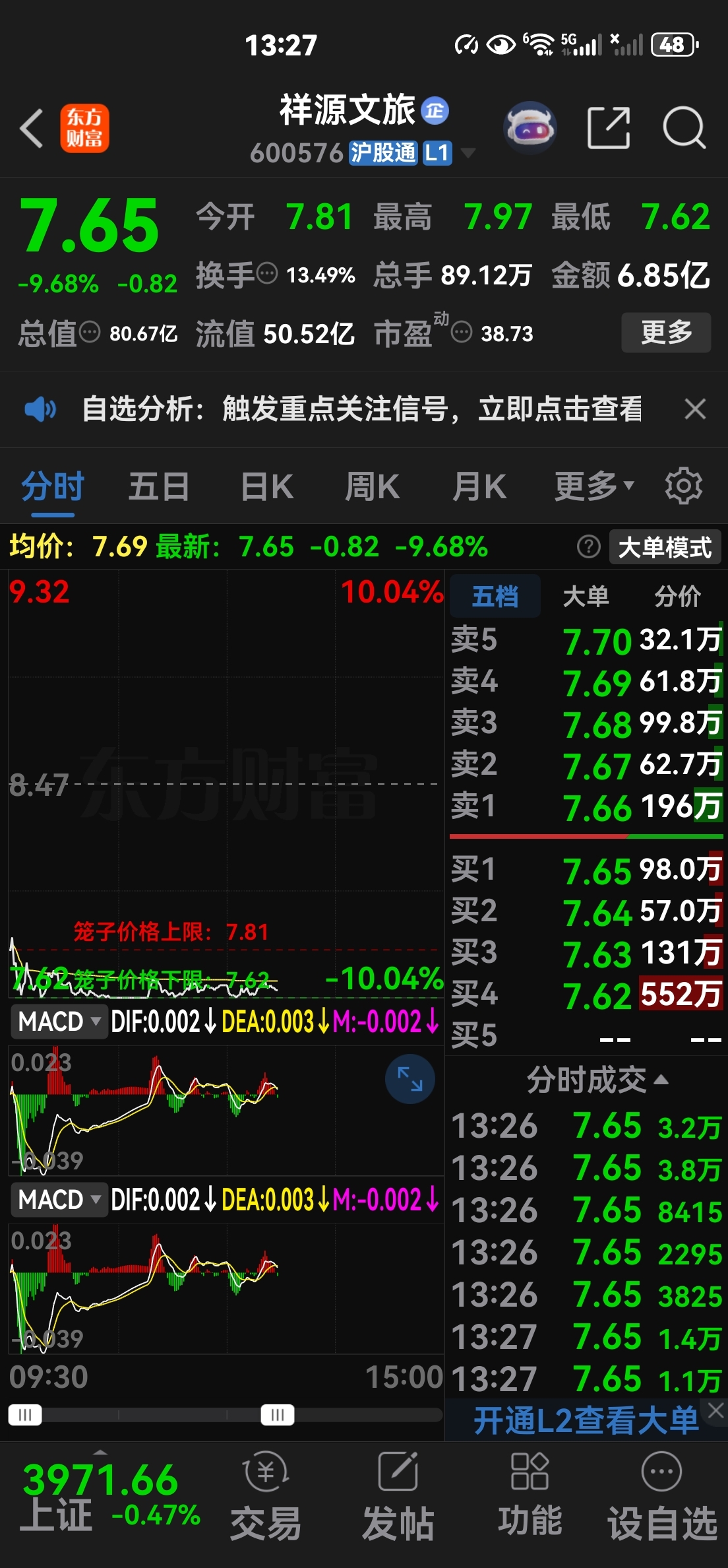 $祥源文旅(SH600576)$ 【我是上海华鑫游子】下午7.65健仓,布局买进,计划翻倍