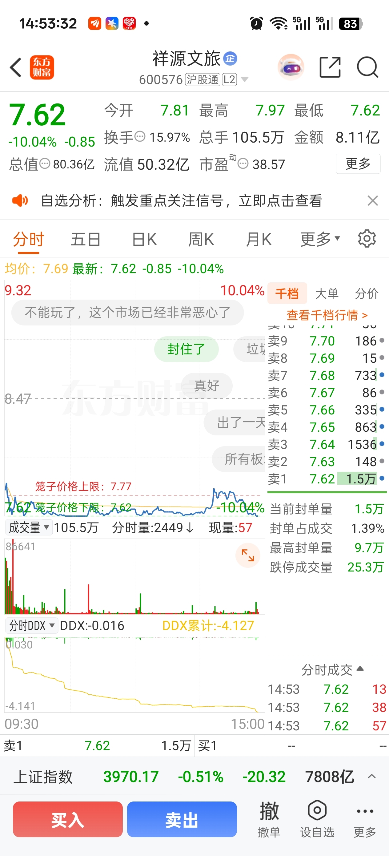 $祥源文旅(SH600576)$ 你们又怕卖低了又怕卖不出去。我跌停进了不怕你