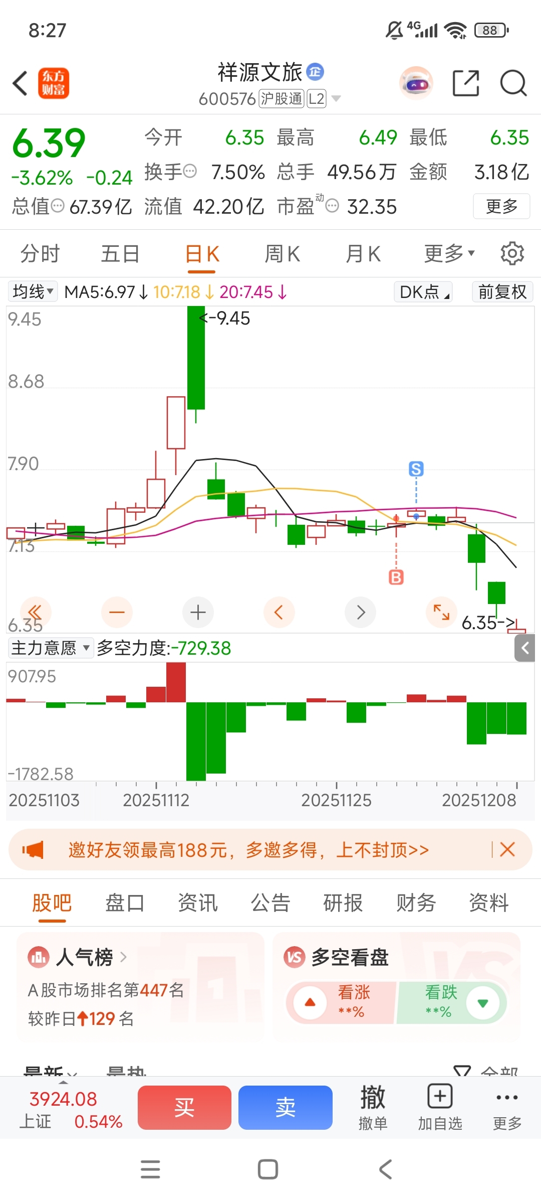 $祥源文旅(SH600576)$ 还好跑得快,差点吃大面
