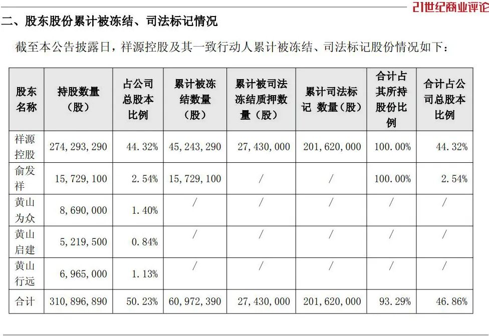 可惜,未等到俞发祥兑付,其本人失去自由。据公告,其6.12亿股祥源文旅、2.74亿股交建股份,也遭司法冻结。