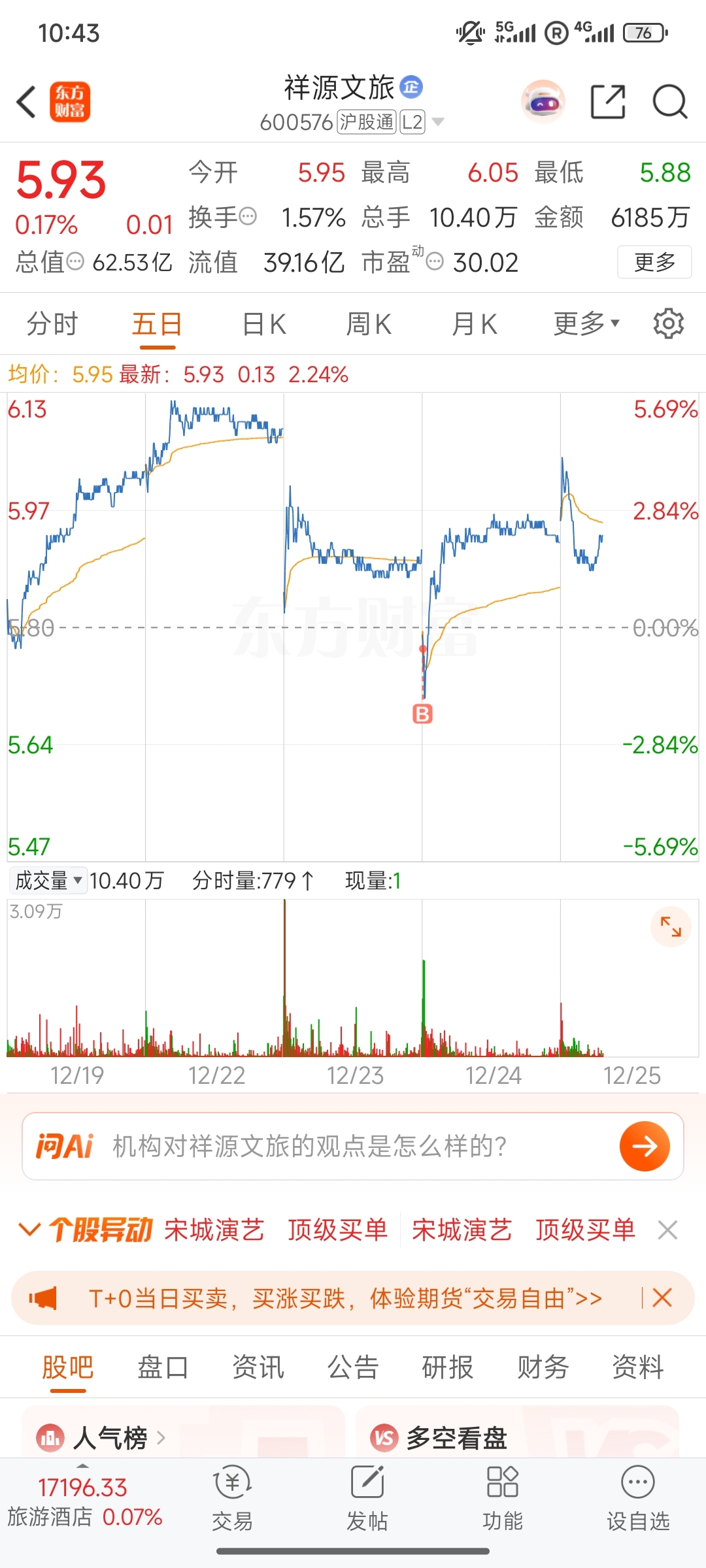 $祥源文旅(SH600576)$ 一句话:近期短线风险不大,买
