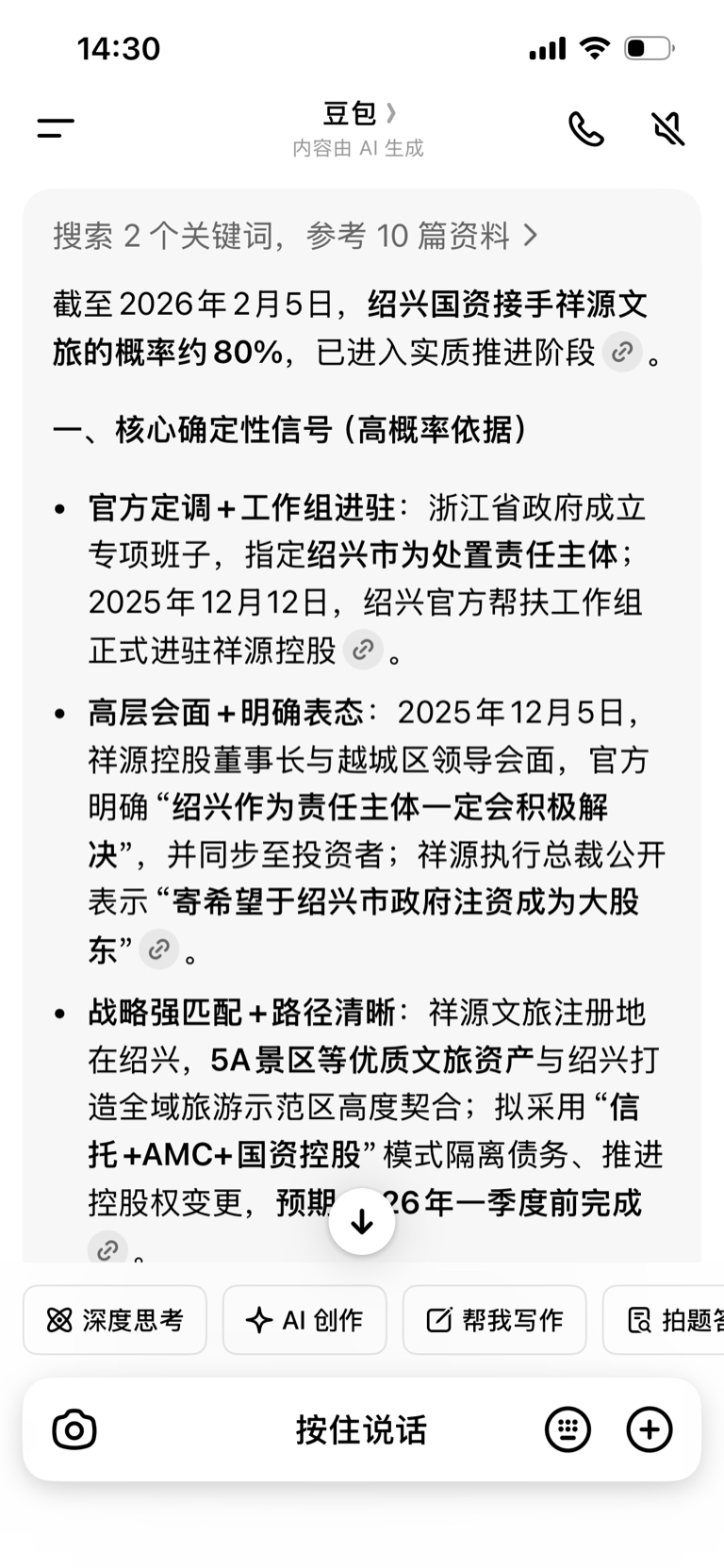 $祥源文旅(SH600576)$ 就看你们信不信豆包了