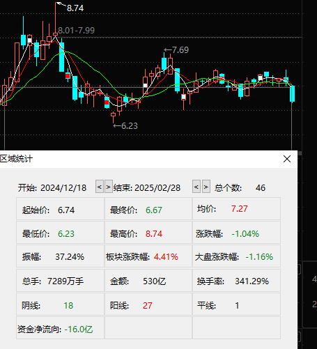 46个交易日成交530亿是流通盘的4倍多,差不多到底了吧