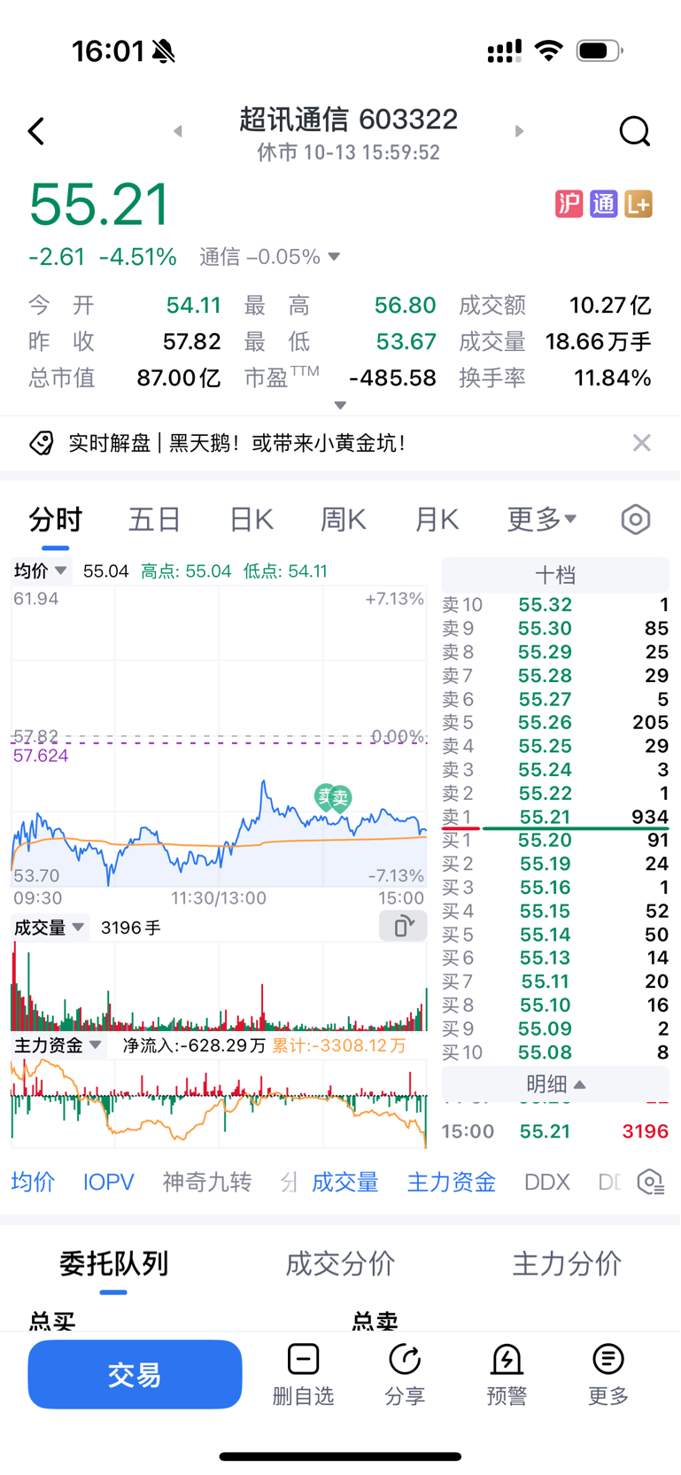 2,超讯迟迟站不上5日线,尾盘卖出2层仓【目前3层仓位】