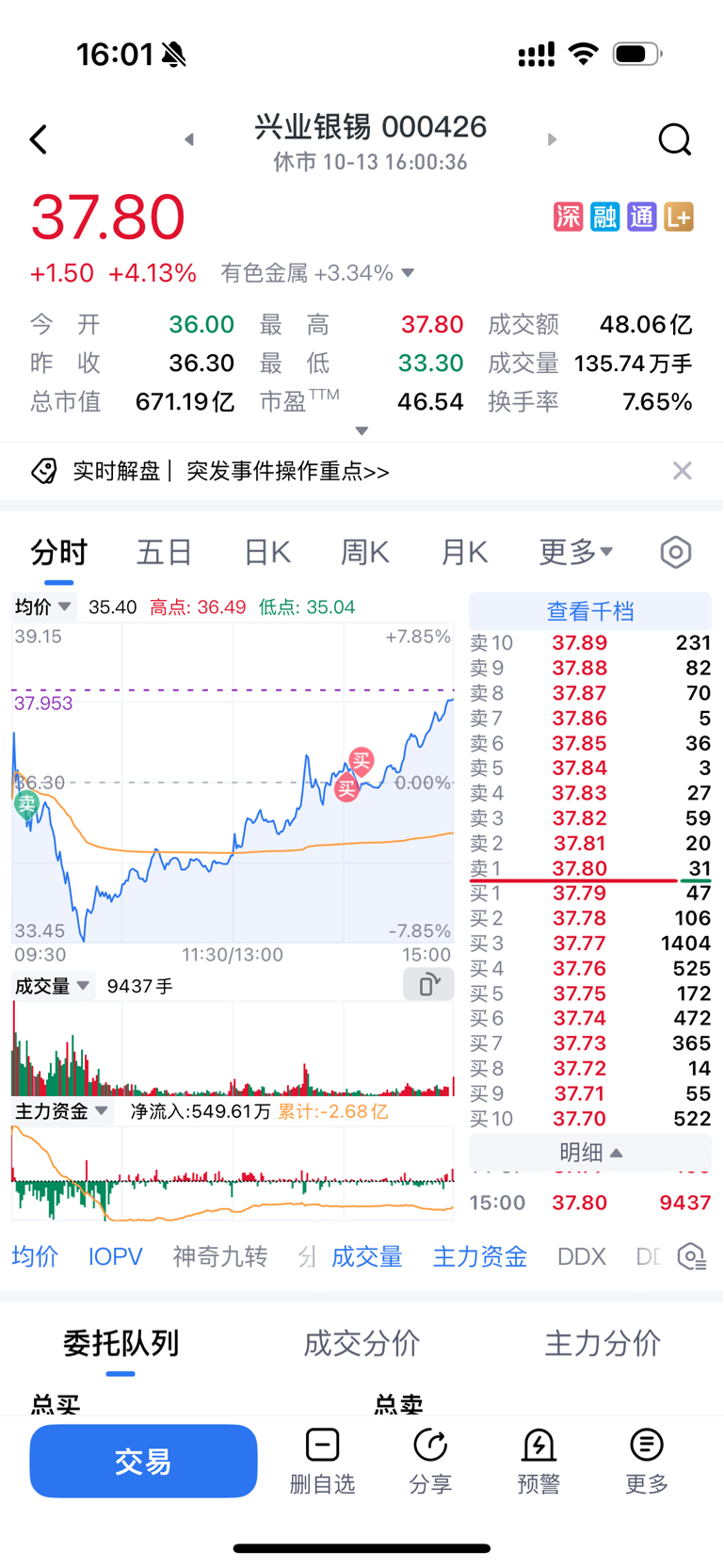 1,早盘规避风险卖出1层,0轴又重新买入兴业银锡2层仓位【目前5层仓位】