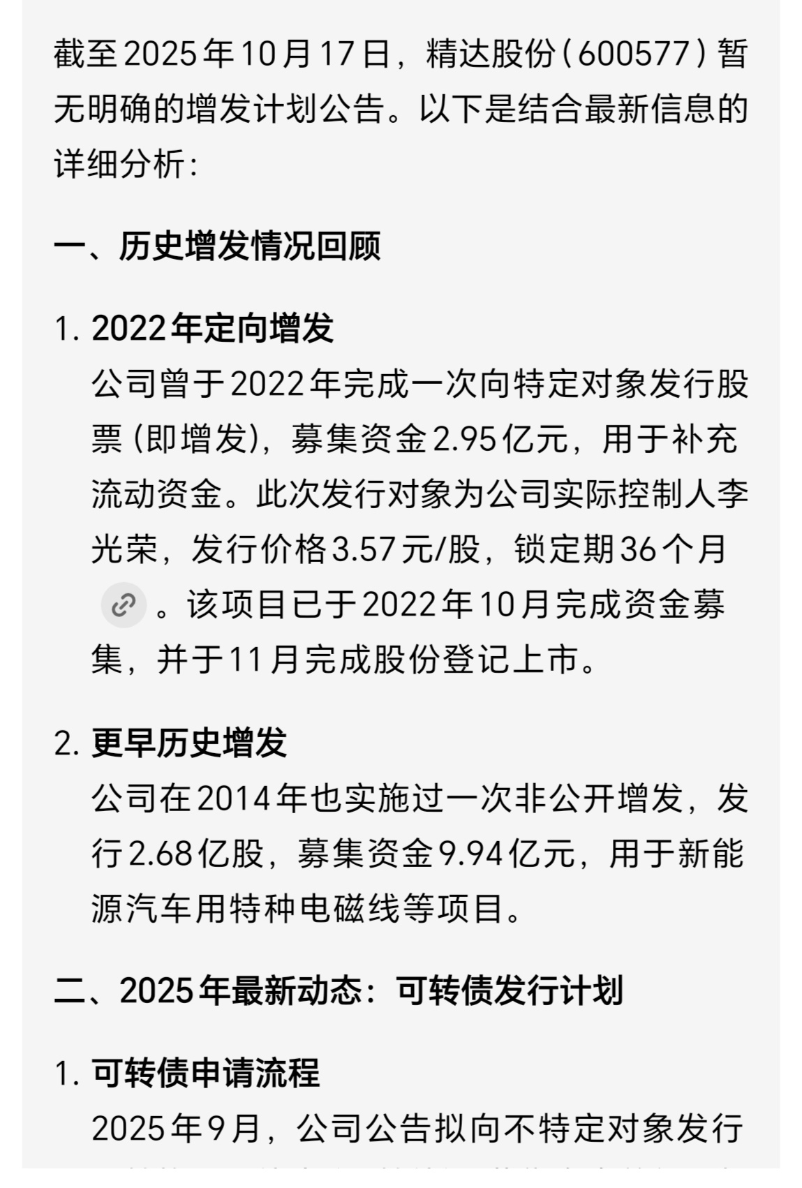 $精达股份(SH600577)$ 2022年11月定增发行2.97亿元股票,锁定期36个月,现在公告减持,到下月11月份刚好锁定期到期完美减持挣3倍套现离场!做保险发家的人脑子就是好,吃骨头渣都不剩!