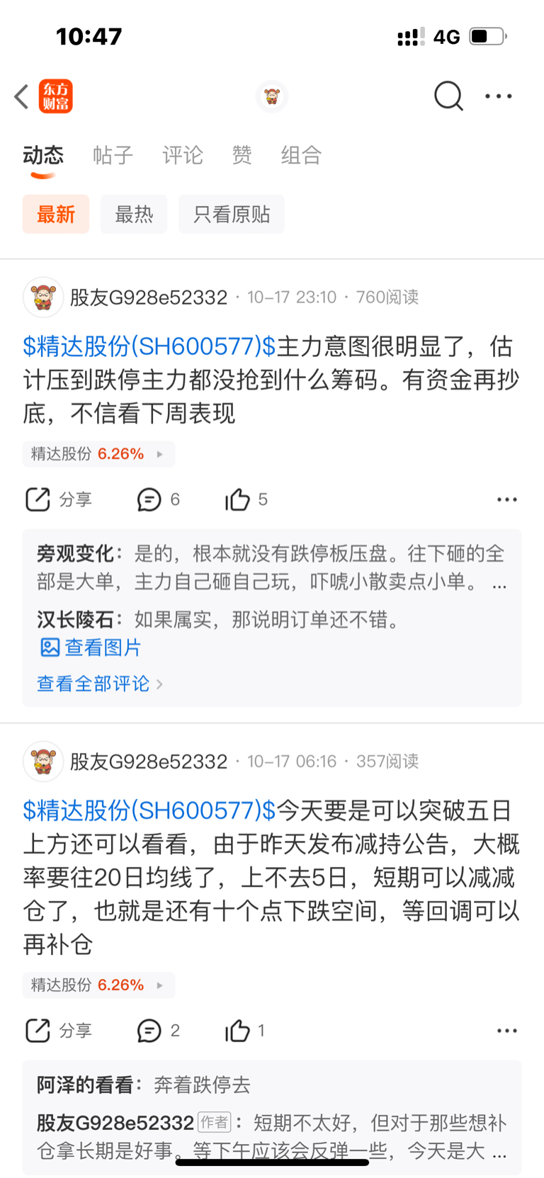 $精达股份(SH600577)$ 那天开盘前我说了还有10%下跌空间,然后收盘跌停左右,然后呢被喷惨了,我也没有说要故意炫耀什么,既然看好就拿着