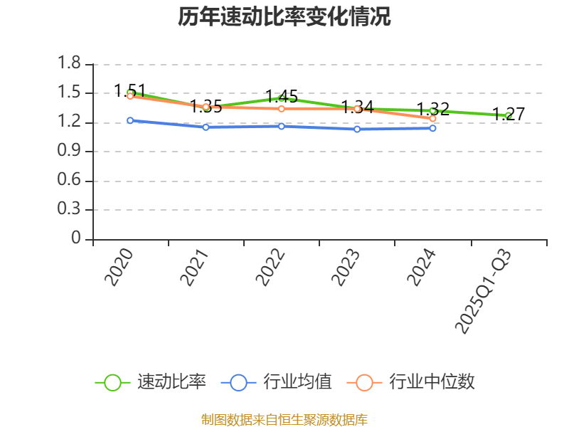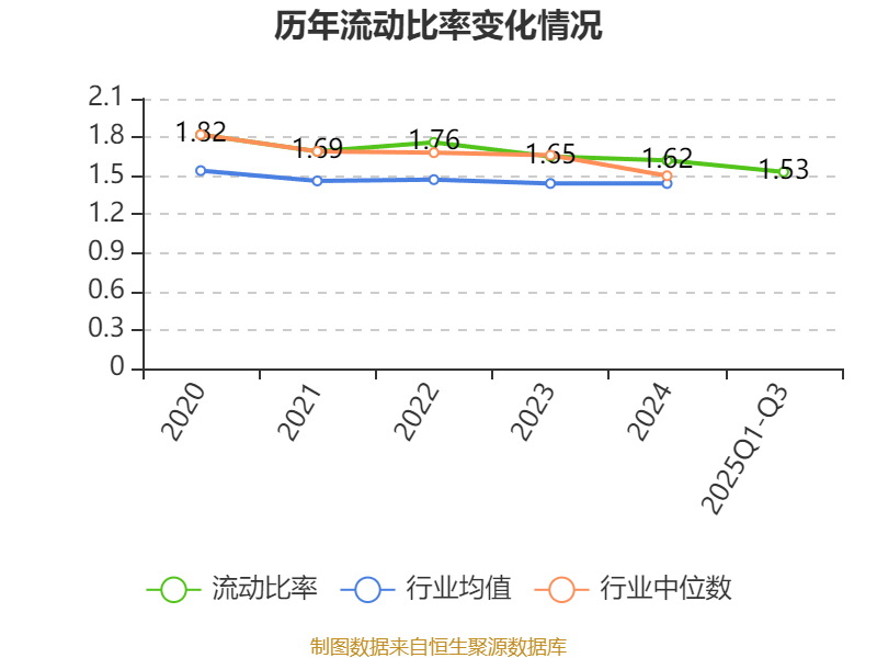 2025年前三季度,公司流动比率为1.53,速动比率为1.27。