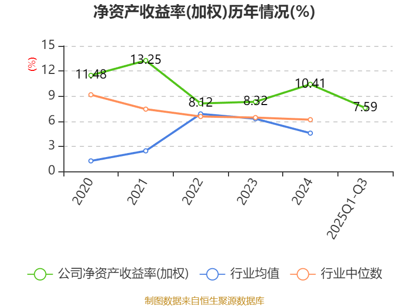盈利能力方面, 2025年前三季度公司加权平均净资产收益率为7.59%,同比下降0.21个百分点。公司2025年前三季度投入资本回报率为5.15%,较上年同期上升0.04个百分点。