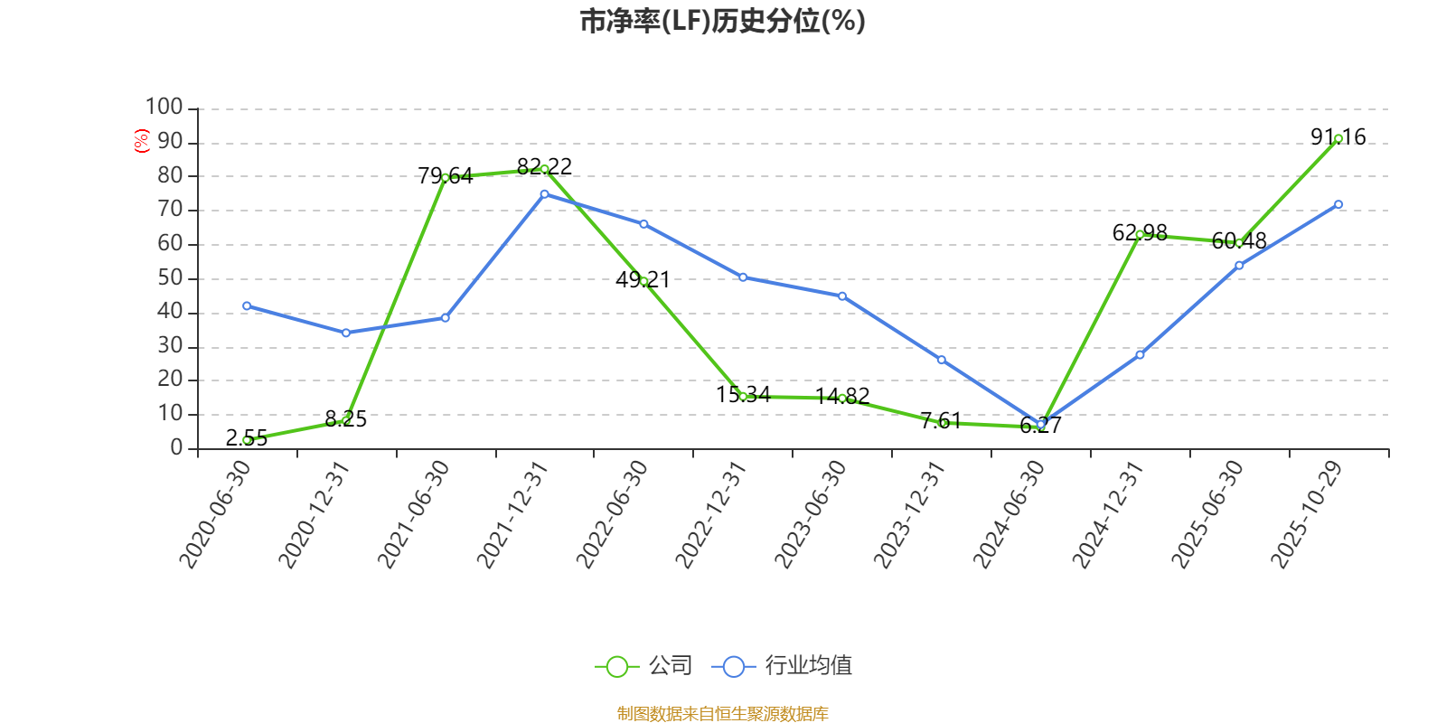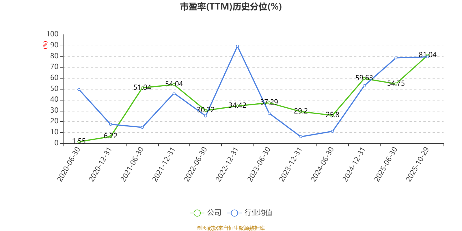 市盈率、市净率为负时,不显示当期分位数,会导致折线图中断。