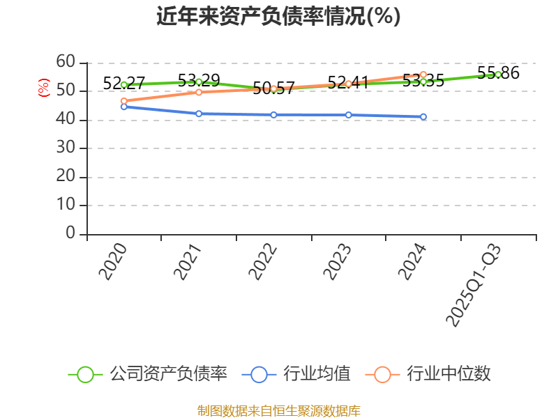 负债重大变化方面,截至2025年三季度末,公司应付票据及应付账款较上年末增加106.3%,占公司总资产比重上升10.84个百分点;短期借款较上年末减少12.23%,占公司总资产比重下降6.13个百分点;长期借款较上年末减少54.67%,占公司总资产比重下降1.31个百分点;一年内到期的非流动负债较上年末增加82.27%,占公司总资产比重上升0.48个百分点。
