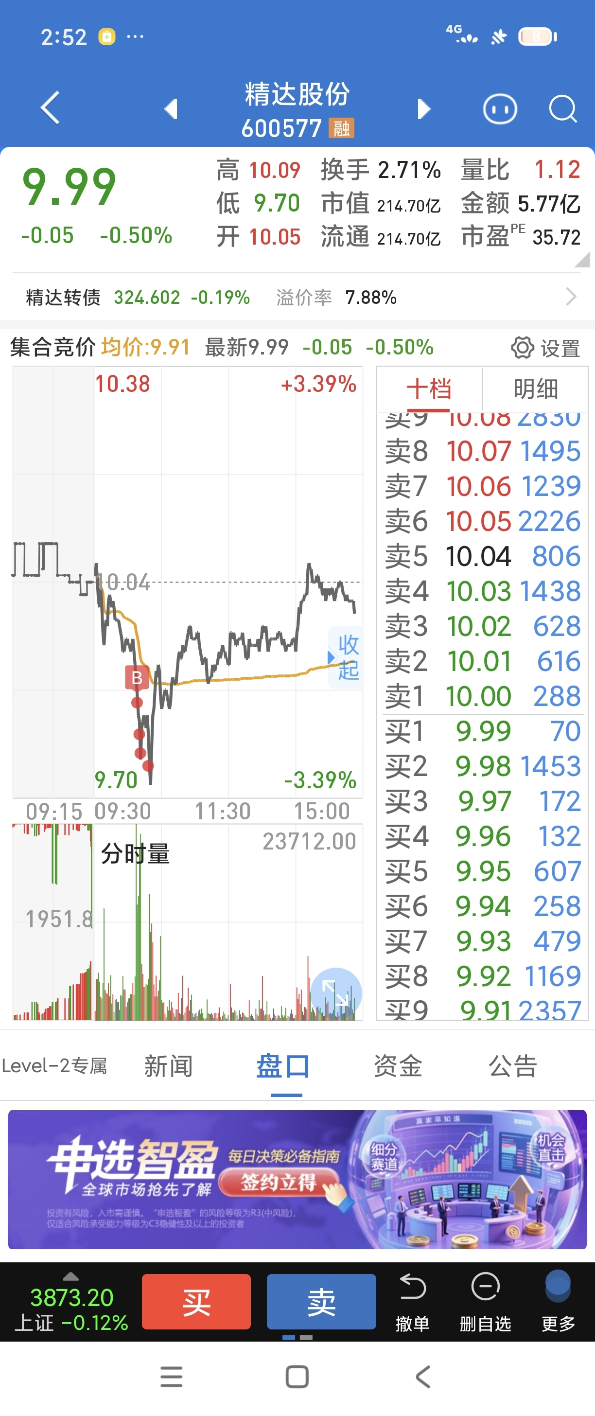 $精达股份(SH600577)$ 不知道是不是黄金坑,承接很强,买单不少,9.7是我的理想买入价位,9.5就是欢喜价位!