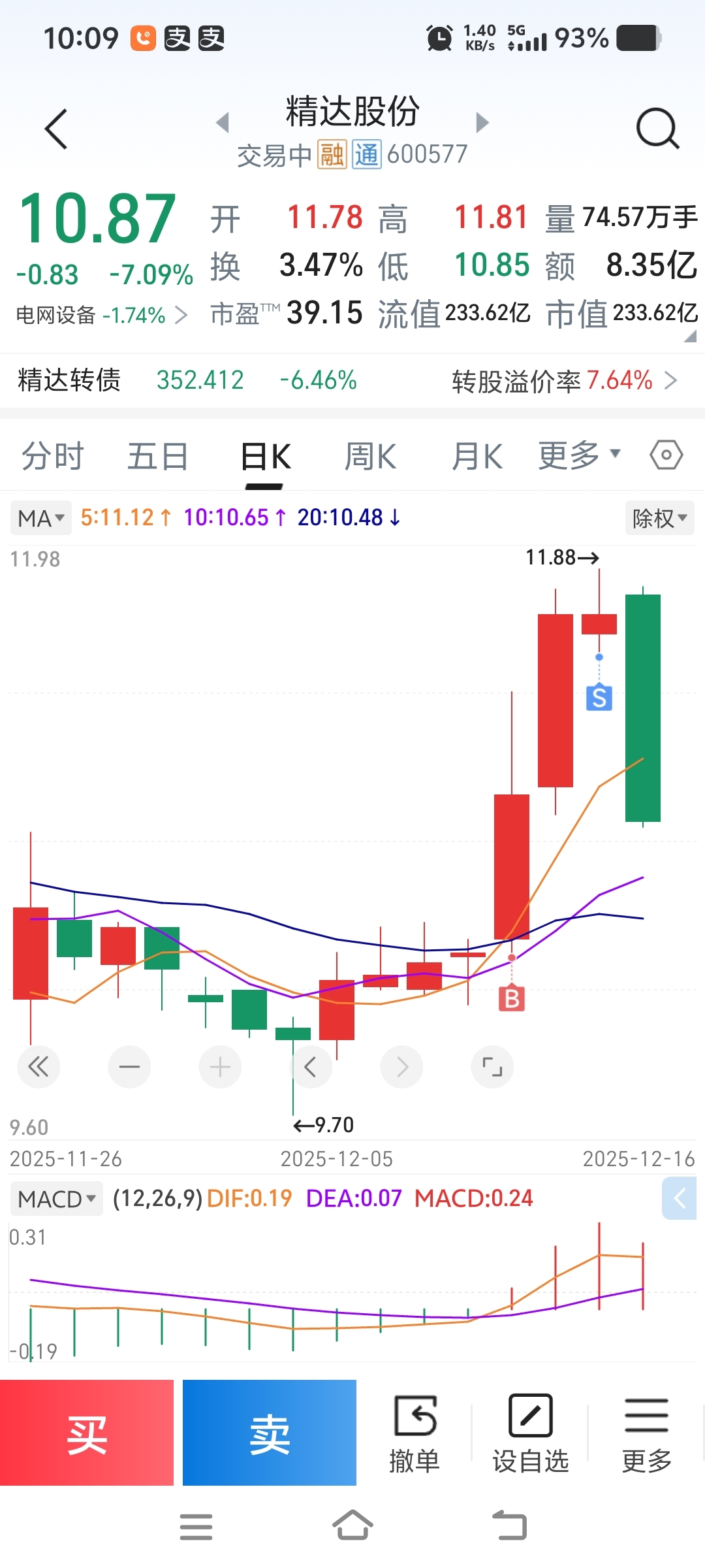 $精达股份(SH600577)$ 还好昨天尾盘全跑了