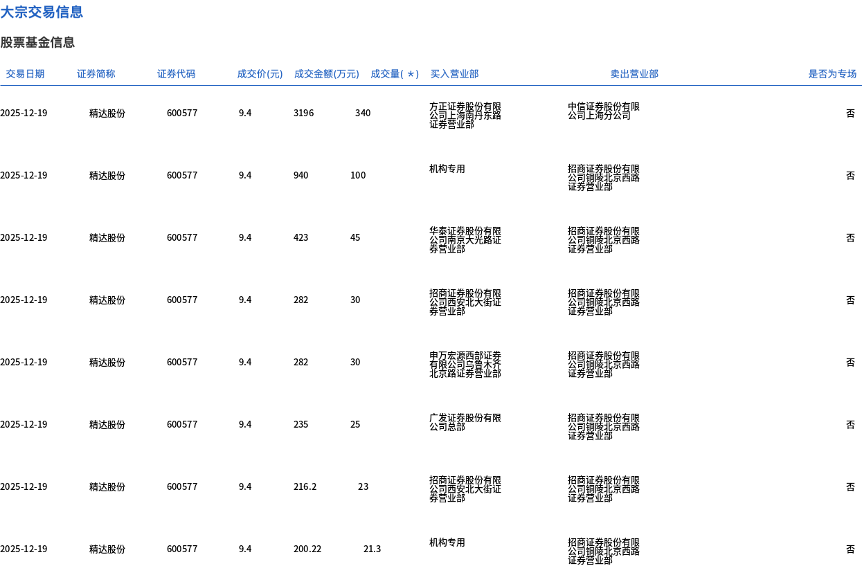 精达股份今日大宗交易折价成交614.3万股,成交额5774.42万元