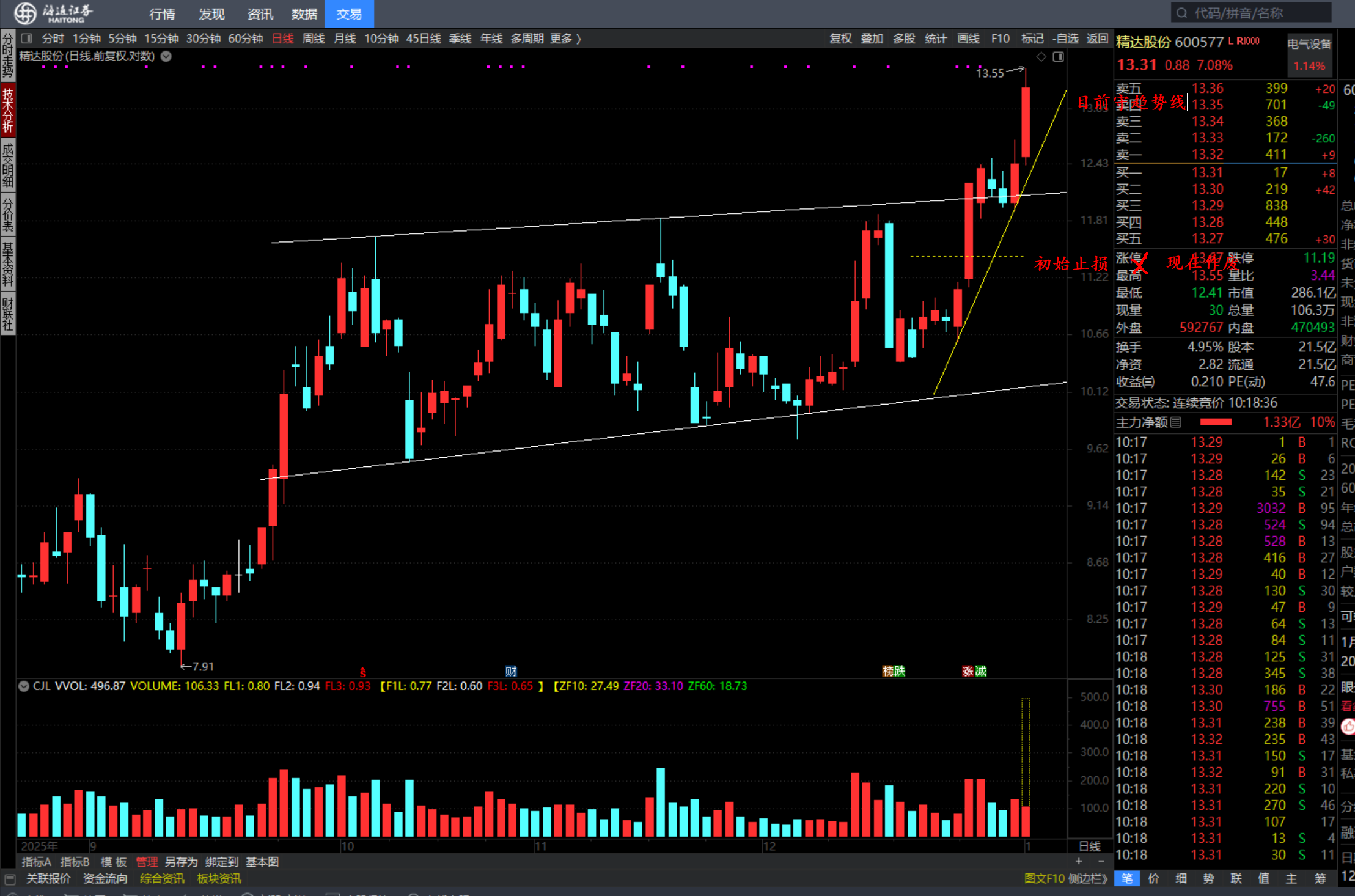 起来了就拉一条趋势线。