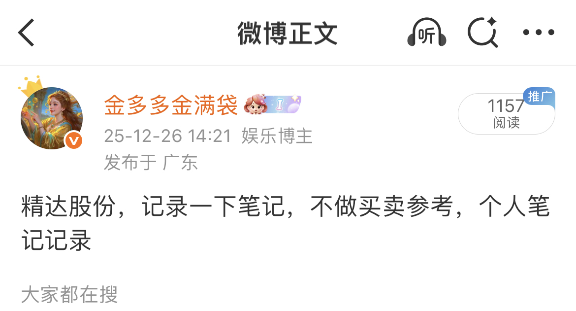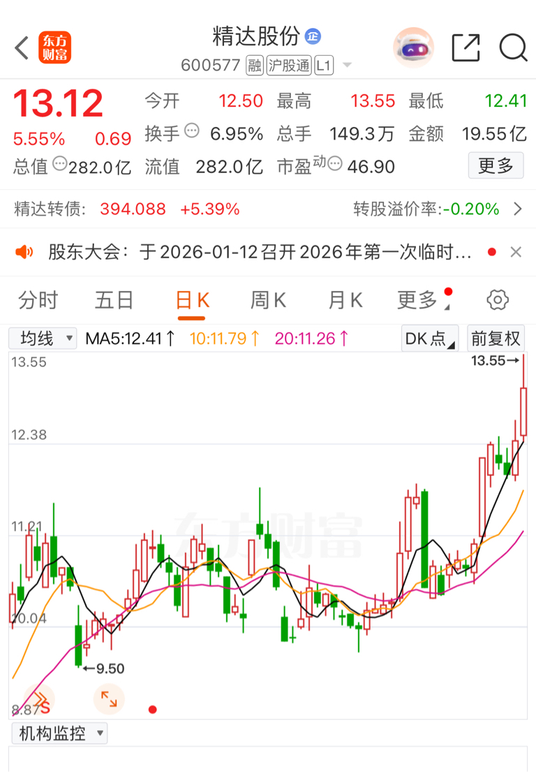 $精达股份(SH600577)$ 精达股份也十几个点利润了吧