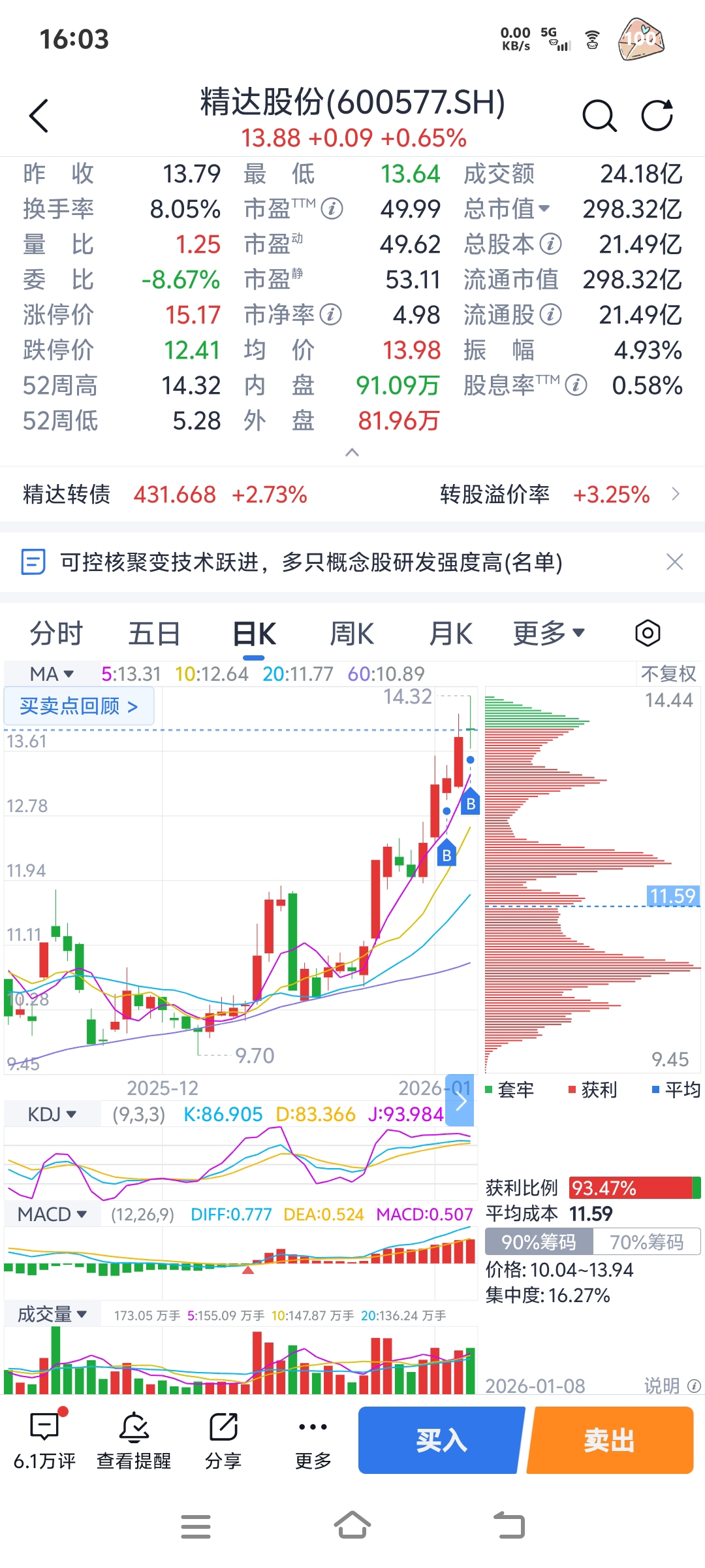 $精达股份(SH600577)$ 怕个毛线,别人不敢追的我来