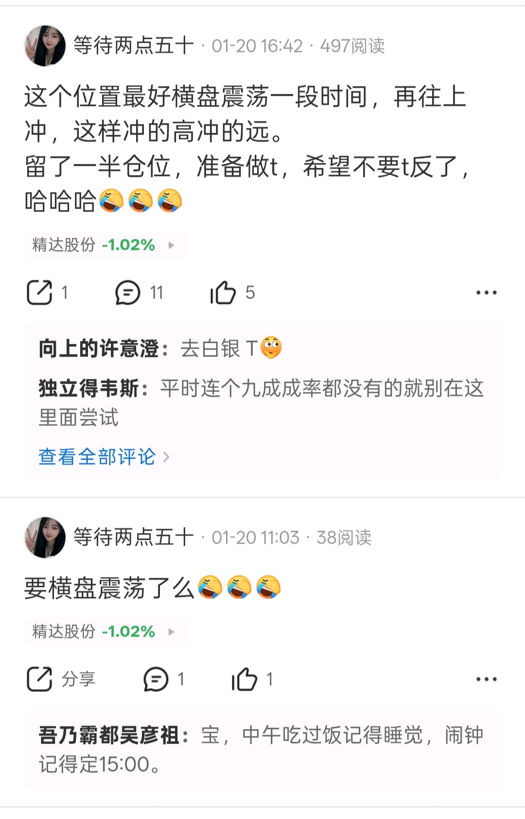 我马上把自己的嘴打烂,对不起大家。我希望的横盘是一天涨停一天跌停,而不是这样一分