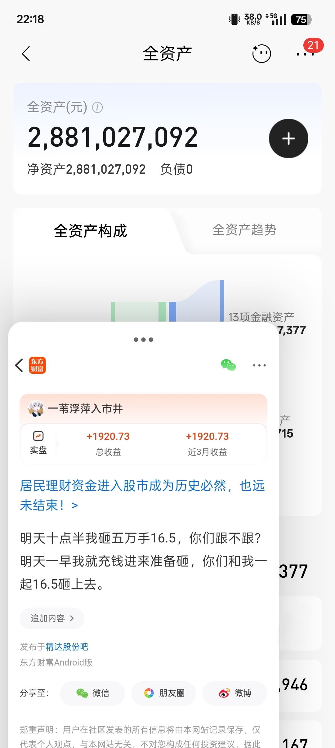 温馨提示: 1.根据《证券法》规定,禁止编造、传播虚假信息或者误导性信息,扰乱证券市场;2.用户在本社区发表的所有资料、言论等仅代表个人观点,与本网站立场无关,不对您构成任何投资建议。用户应基于自己的独立判断,自行决定证券投资并承担相应风险。《东方财富社区管理规定》