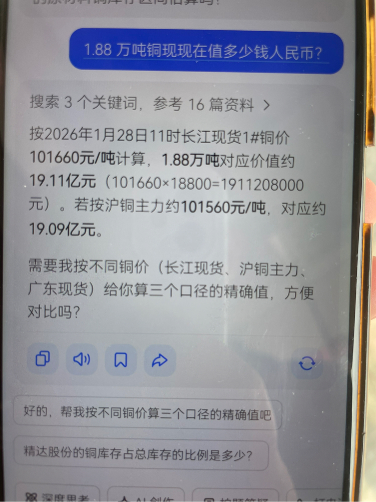 精达股份也有1.88万吨铜线,不要卖了也有19亿,等升值就好了。