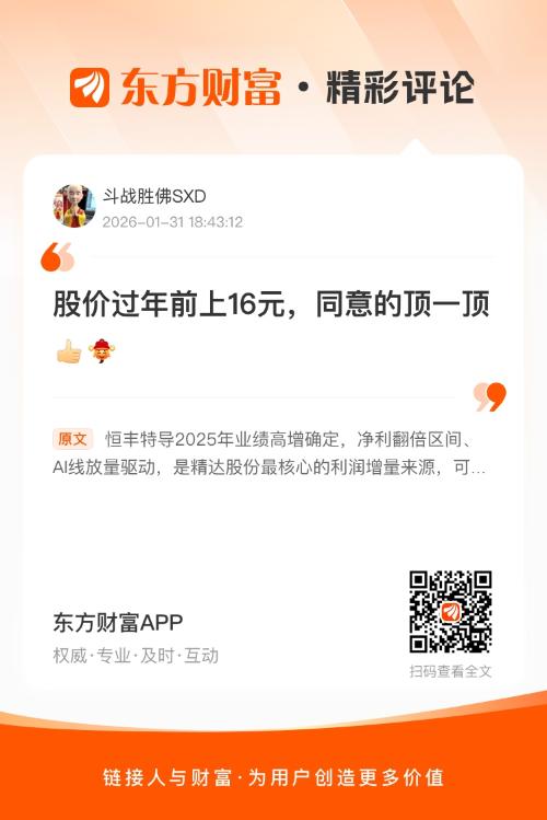 我在《恒丰特导2025年业绩高增确定,净利翻倍区间、AI线放量驱动,是精达股份最核心的利润增量来源,可以预见精达年报预增一定非常亮眼!》的评论获得了大家的关注。