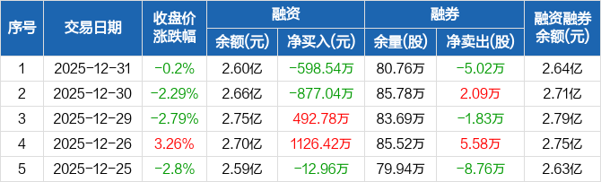 京能电力:融资净偿还598.54万元,融资余额2.6亿元(12-31)