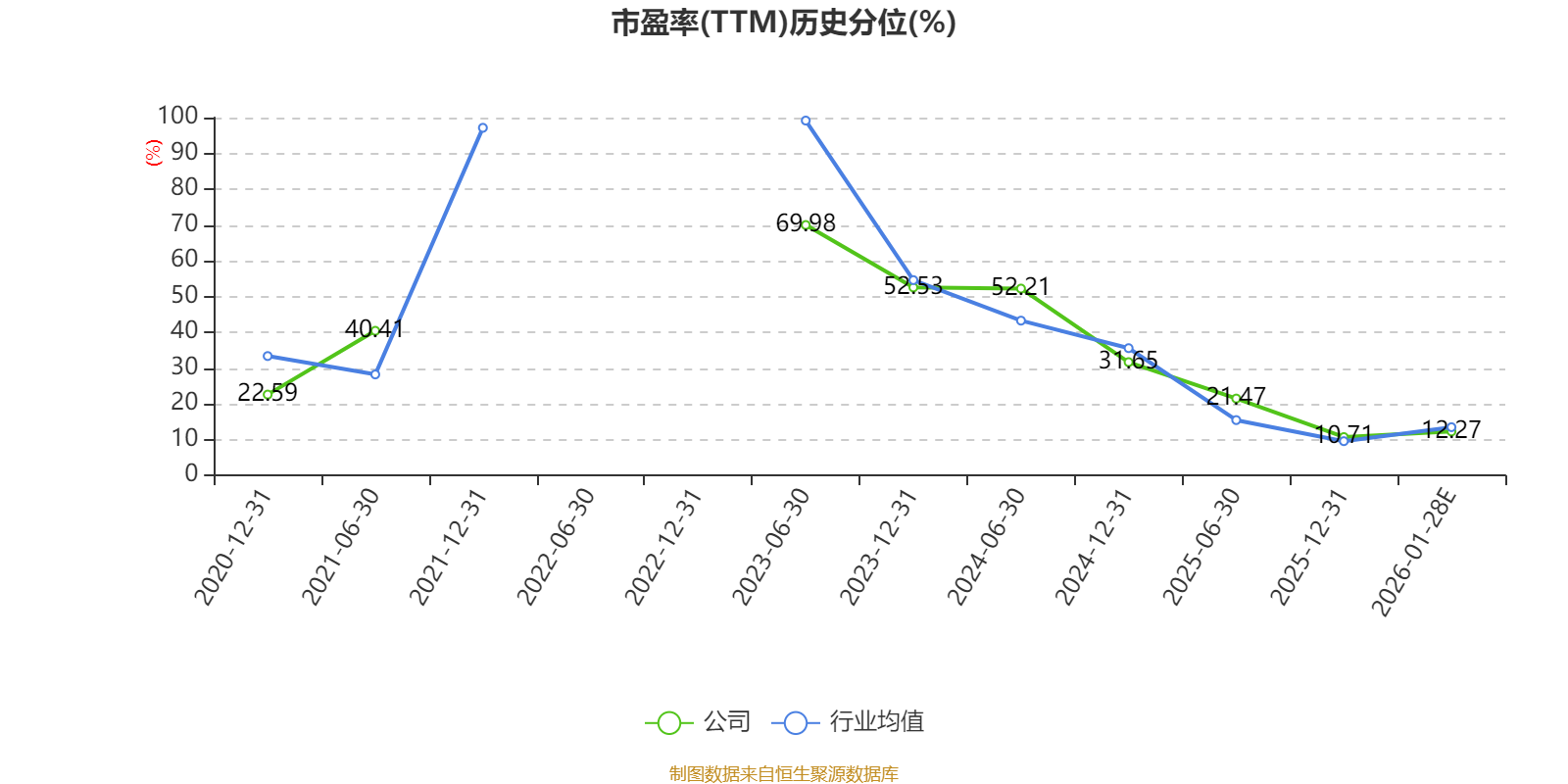 以本次披露业绩预告均值计算,公司近年市盈率(TTM)图如下所示: