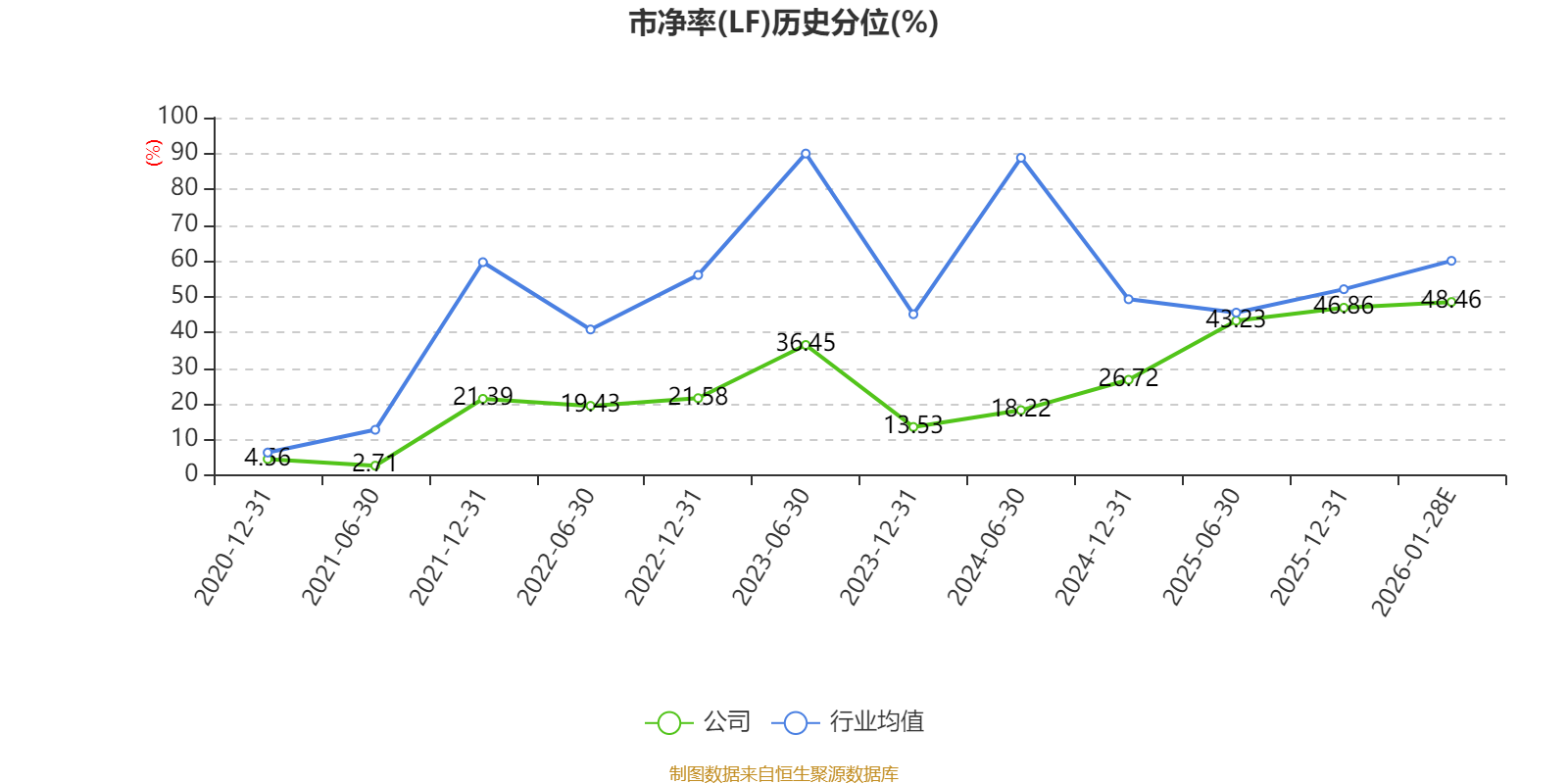 市盈率、市净率为负时,不显示当期分位数,会导致折线图中断。