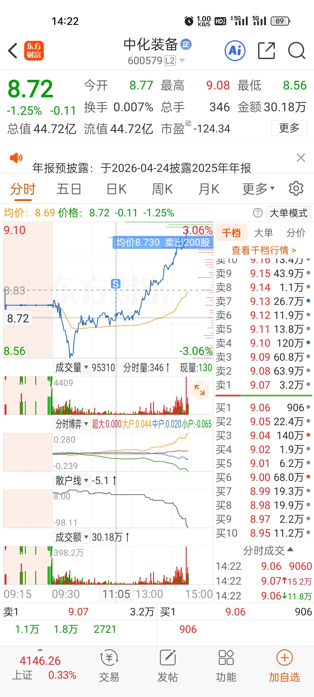 $中化装备(SH600579)$ 原来是我这两百股影响股价上涨的