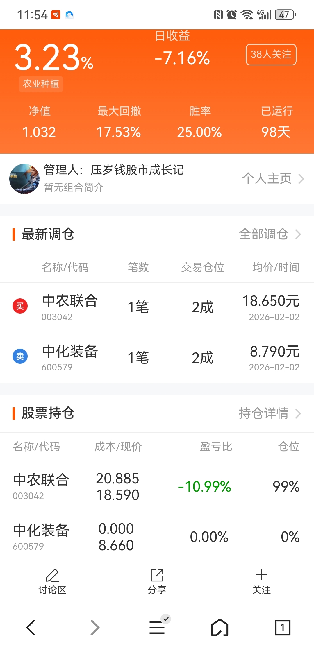 娶媳妇上午开盘就清仓中化了,拿钱跌停价补仓中农联合去了,发这个贴就是验证下他这次