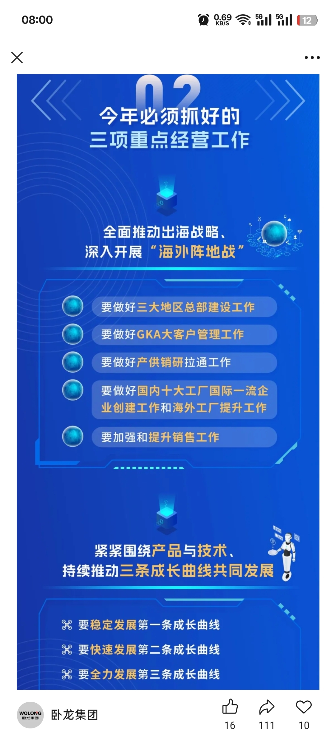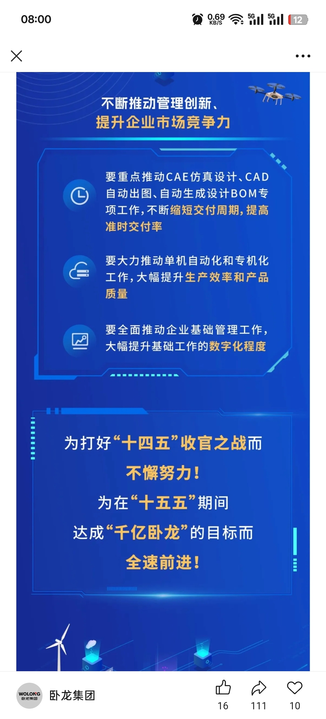 $卧龙电驱(SH600580)$ 陈老板讲话,打造千亿卧龙。