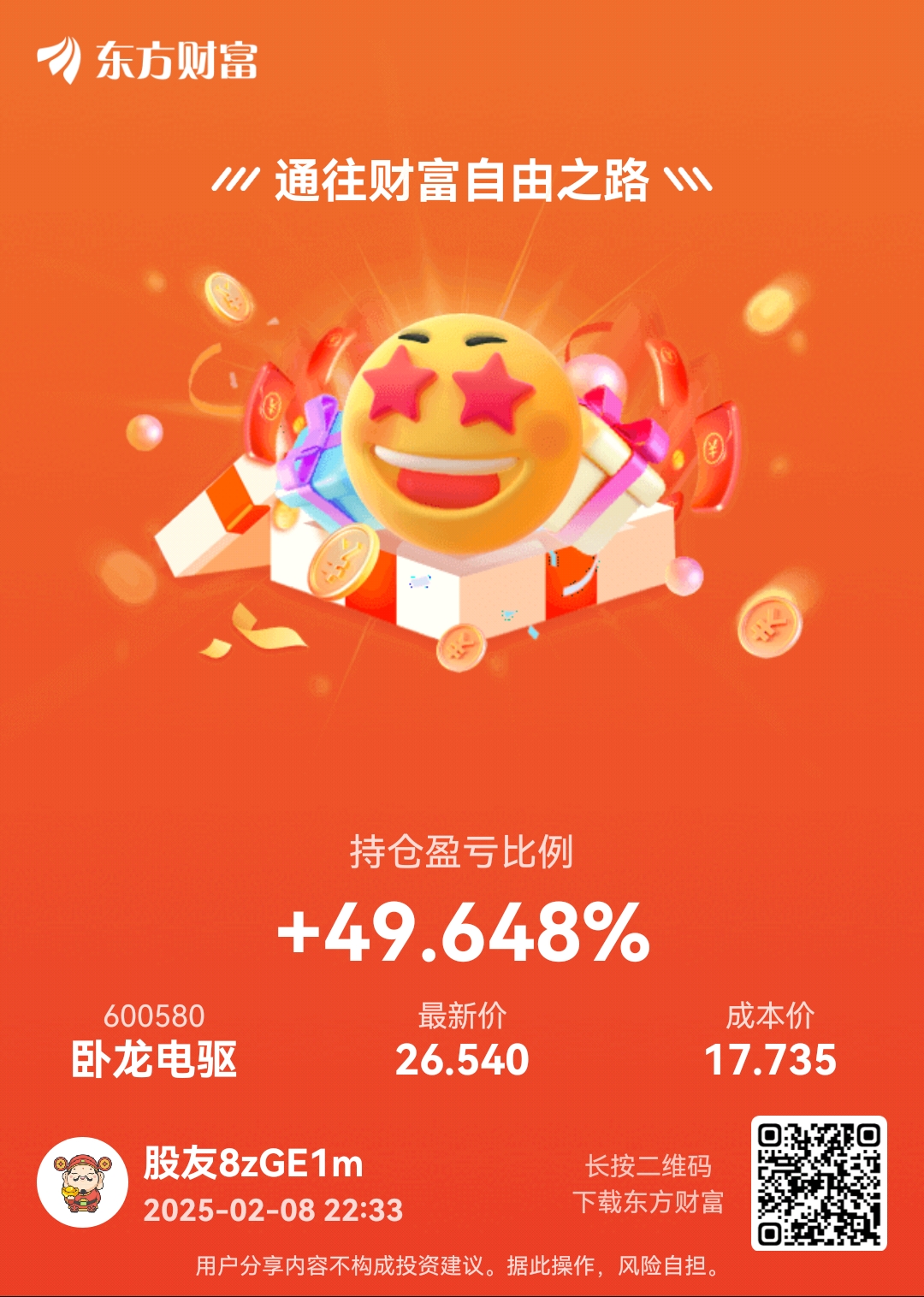 温馨提示: 1.根据《证券法》规定,禁止编造、传播虚假信息或者误导性信息,扰乱证券市场;2.用户在本社区发表的所有资料、言论等仅代表个人观点,与本网站立场无关,不对您构成任何投资建议。用户应基于自己的独立判断,自行决定证券投资并承担相应风险。《东方财富社区管理规定》