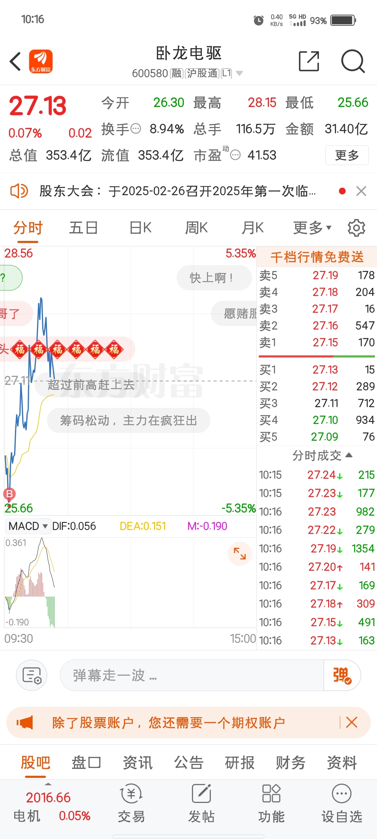 $卧龙电驱(SH600580)$ 盘中富贵???