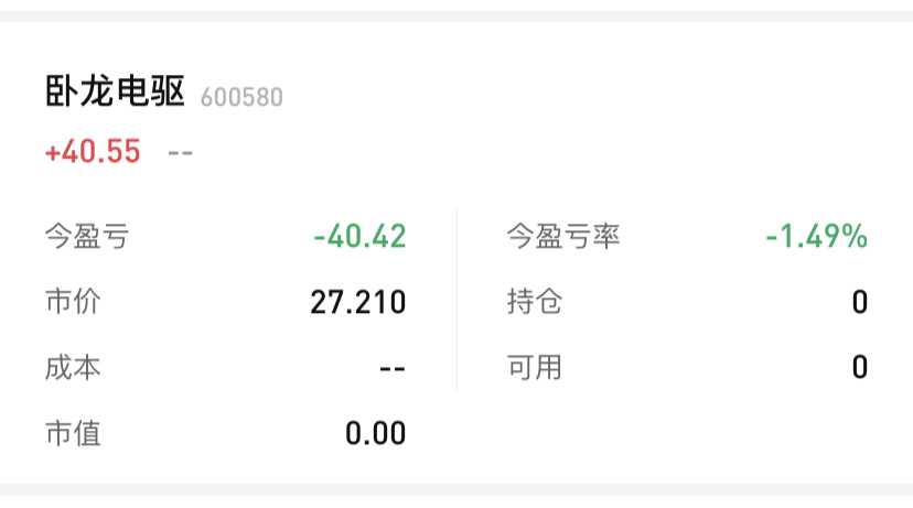 $卧龙电驱(SH600580)$ 很好,少赚几十块钱