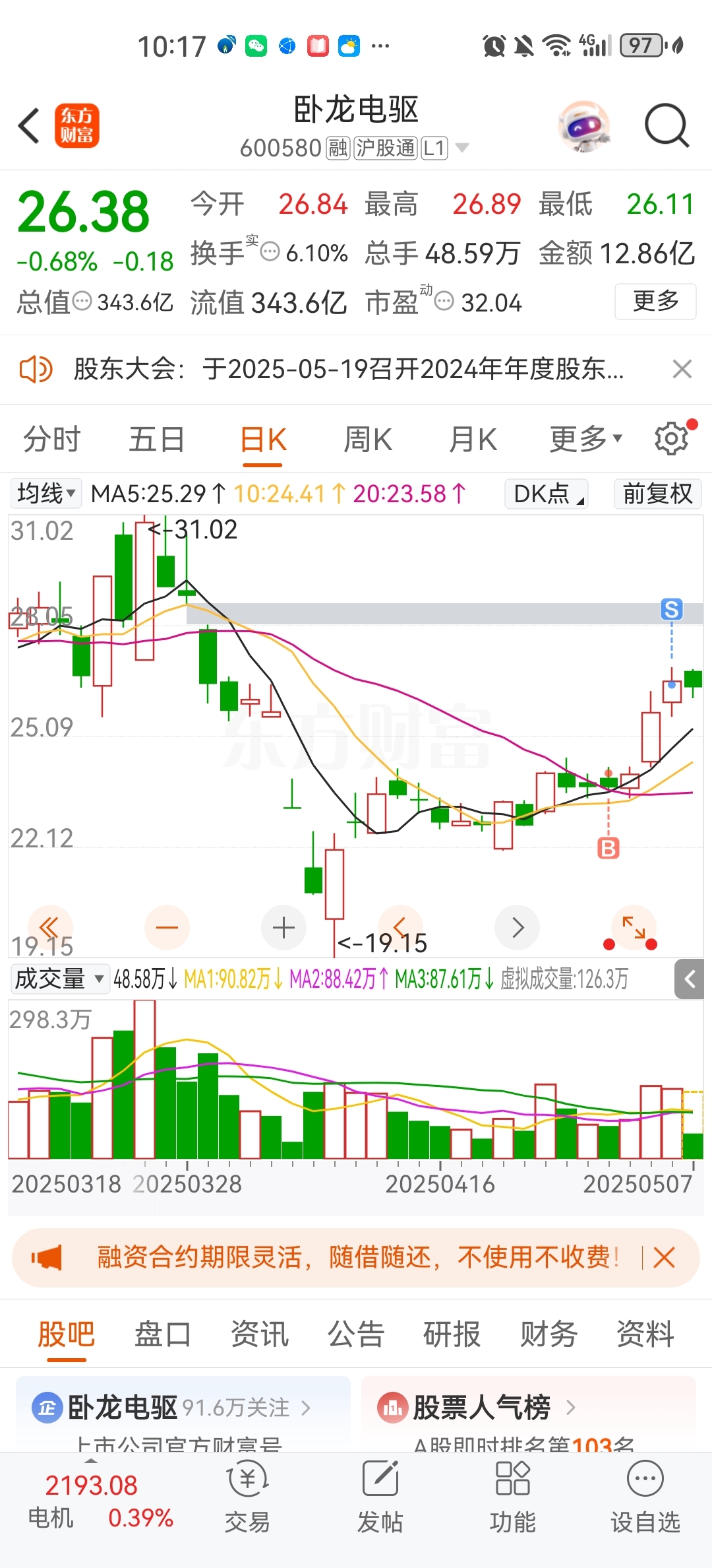 $卧龙电驱(SH600580)$ 还好昨天跑了