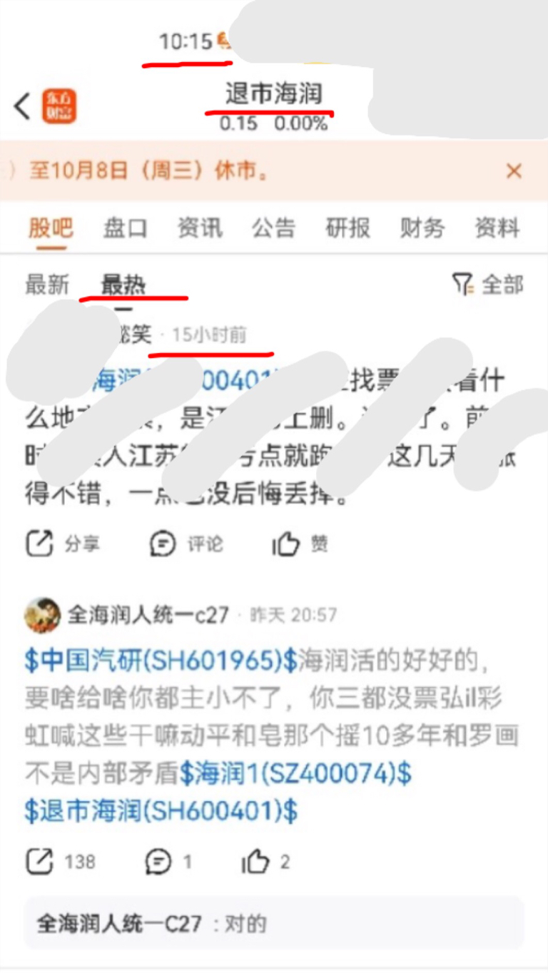 $卧龙电驱(SH600580)$ 吧长好:晚上10:05上来的不同时间段的截图,最热作比重摘曲哈哈,海润1,细致的秦念茜,506,hai,5591。退市海润:沉默懿笑都是在最热作比超过10小时的就好几个,散上来的截图若干,麻烦吧长对集体作比的无股人做一下维护系统时间轴$退市海润(SH600401)$ $海润1(SZ400074)$