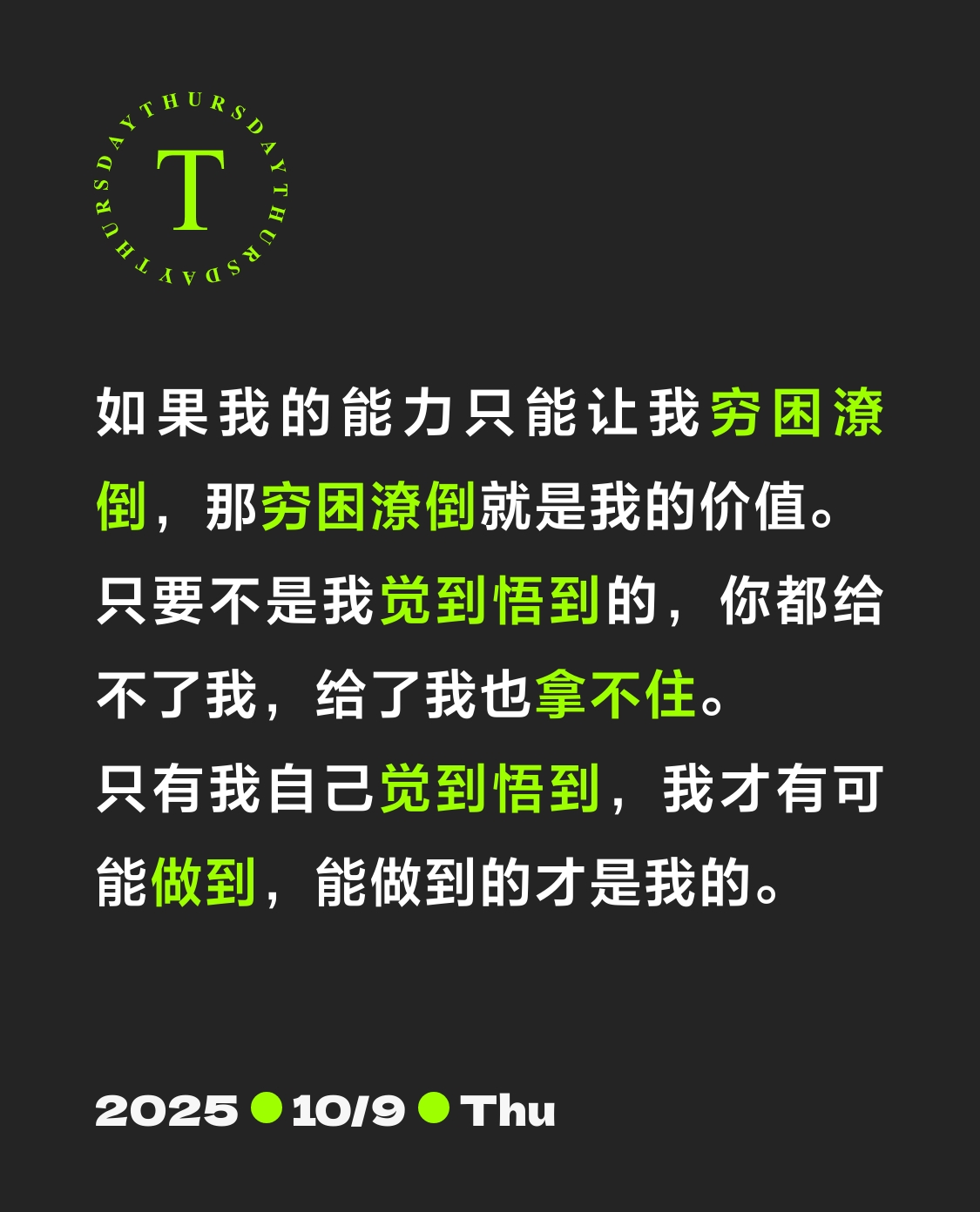 如果我的能力只能让我穷困潦倒,那穷困潦倒就是我的价值。只要不是我觉到悟到的,你都