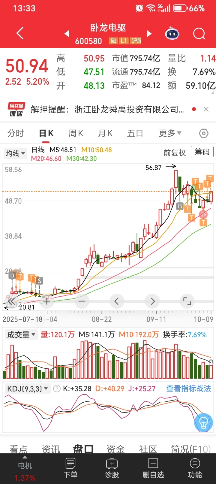 $卧龙电驱(SH600580)$ 感谢大哥,最高点套的