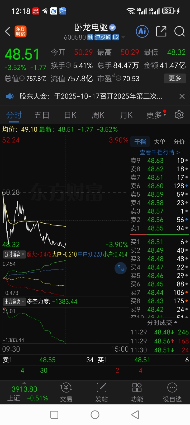 $卧龙电驱(SH600580)$ 下午跌停板了,全是散户买的