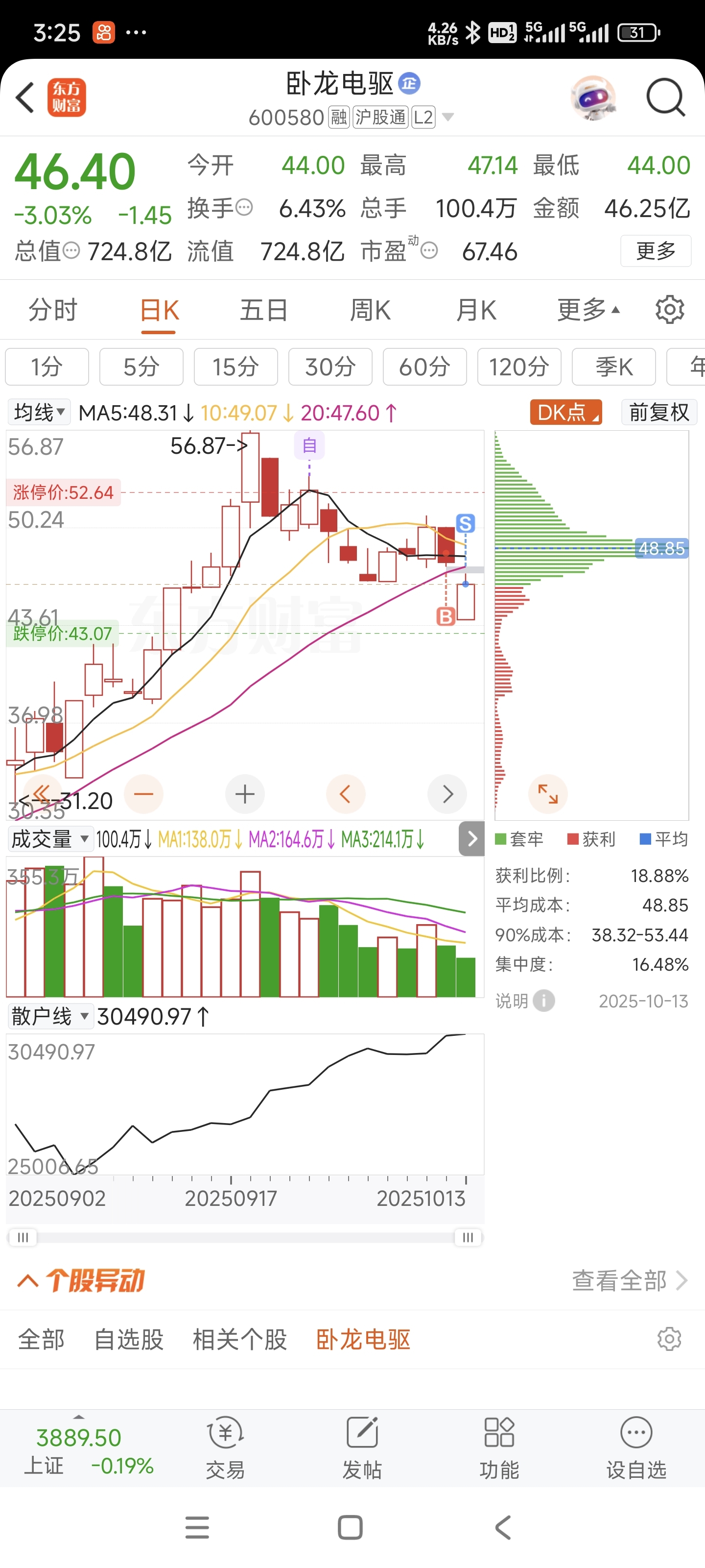 $卧龙电驱(SH600580)$ 二十日线下,先走了