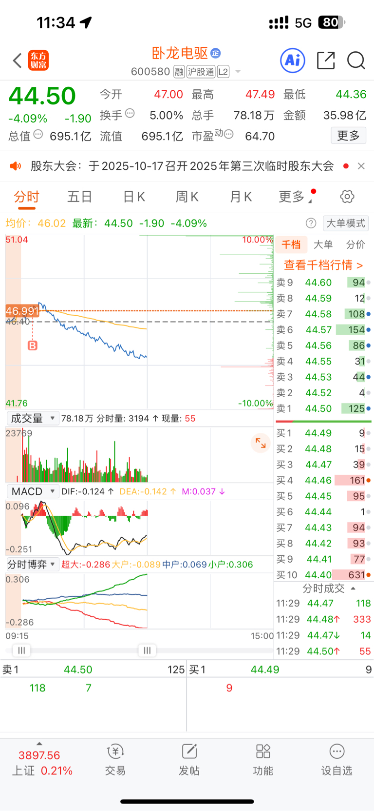 $卧龙电驱(SH600580)$ 不好意思了兄弟们 都怪我买了