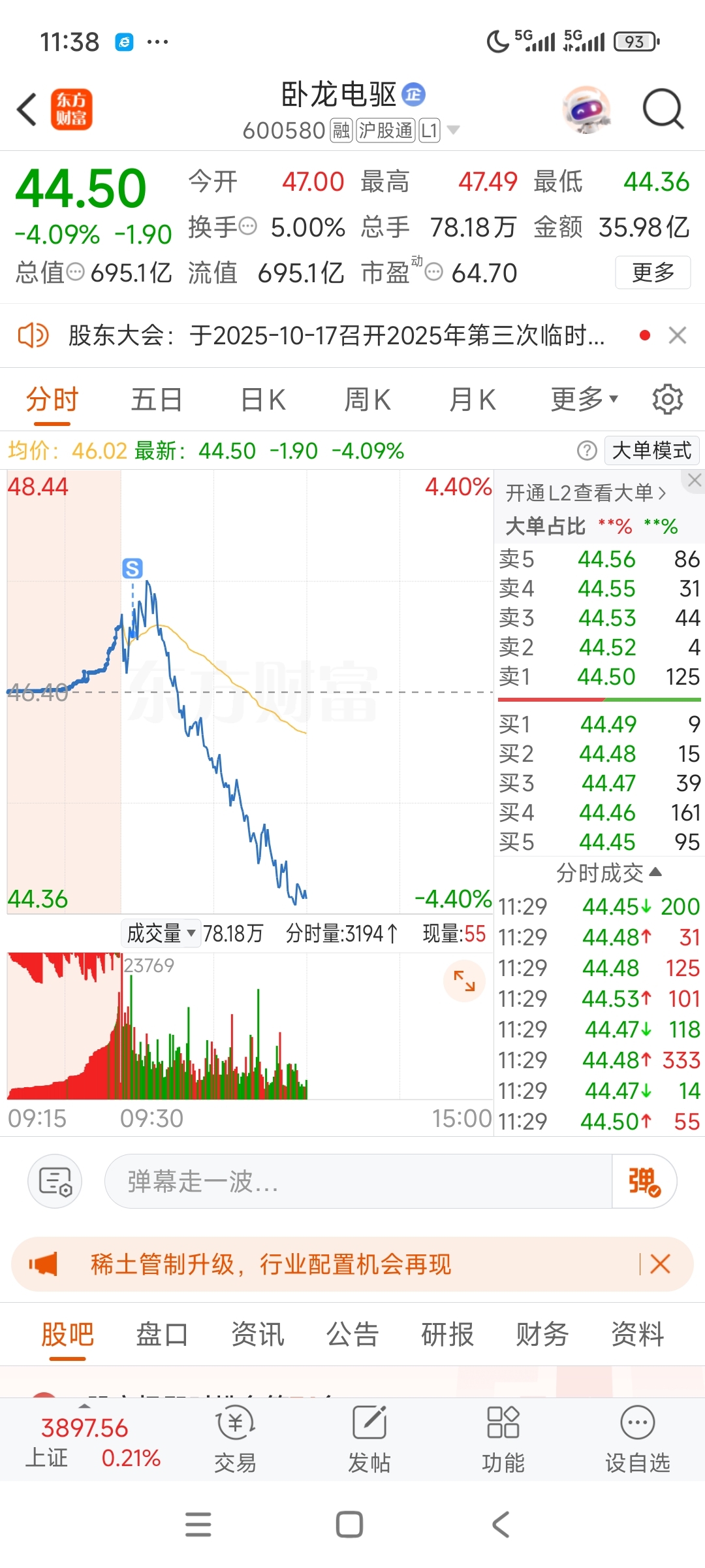 $卧龙电驱(SH600580)$ 还好我跑的快连滚带爬的跑出来了