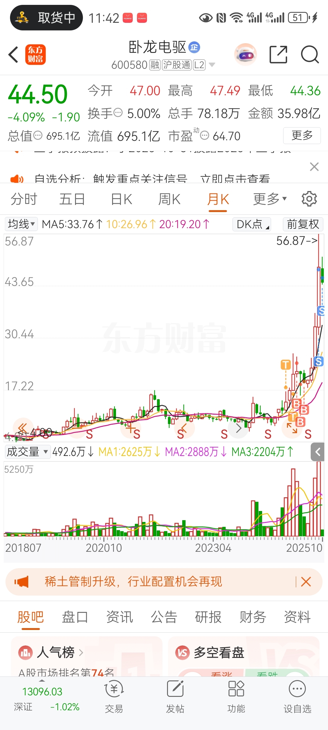 $卧龙电驱(SH600580)$ 拿了200多天,我走了,江湖再见!