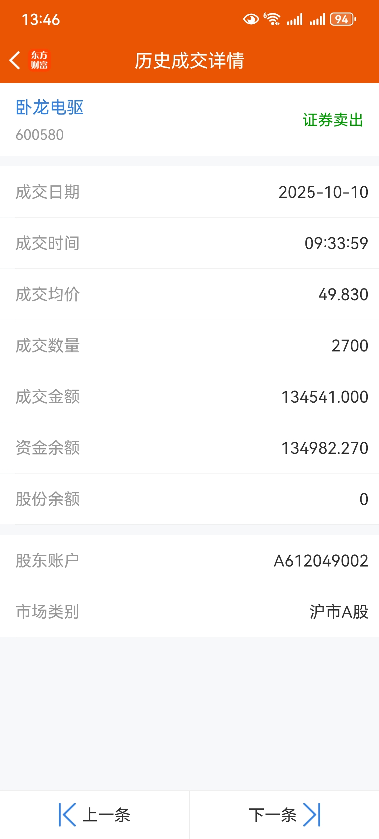 $卧龙电驱(SH600580)$ 还好我49.83跑了