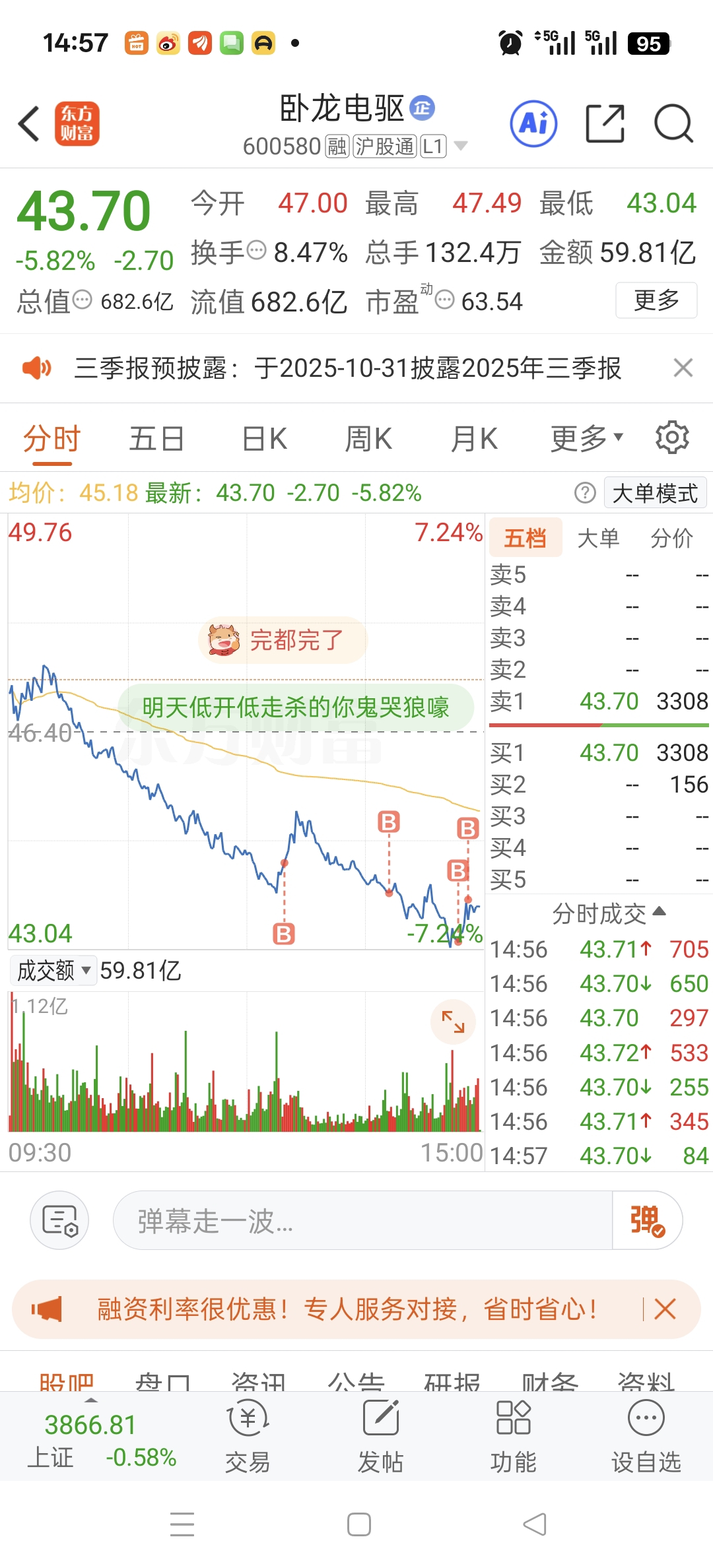 $卧龙电驱(SH600580)$ 别人恐慌,我贪婪