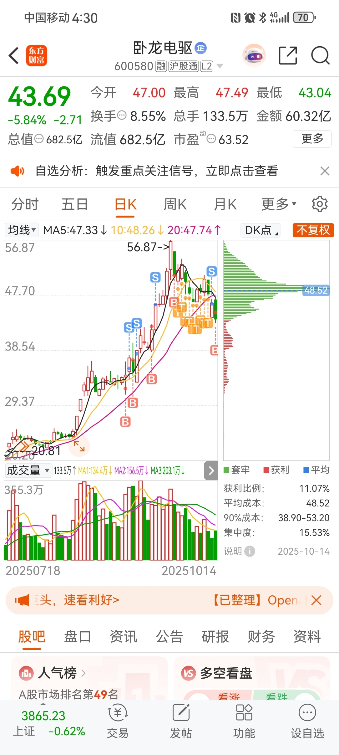 $卧龙电驱(SH600580)$ 管你涨跌就是不走