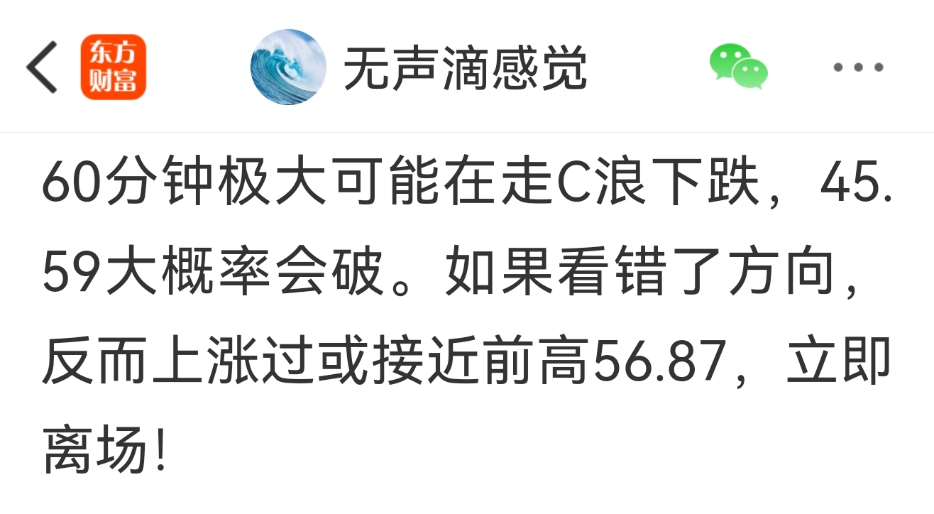 10.11日:60分钟极大可能在走C浪下跌,45.59大概率会破。