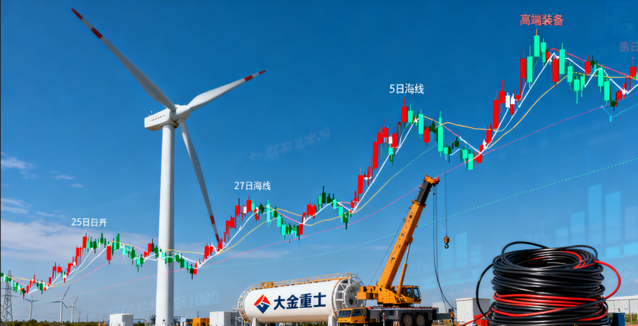 $大金重工(SZ002487)$:低开低走,盘中一度涨超5%,股价是有继续突破的,若不是指数影响,牛哥觉得是能够拉板的,这几天风电板块是牛哥常说的,新强联、东方电缆、大金重工、金风科技等都是提过的,表现是有目共睹的,日内开盘就是主动拉升,虽回落但更多是被动调整,不用担心,大金虽然卖飞了,但至少说明逻辑是没问题,年初企稳后就一直走涨,这个过程光模块、PCB、机器人等都是大涨过的,但都未影响它,其热度不高,因此很多人是没注意到它的强势,前期独立走强,现在有了板块支撑,应该会走的更远,今天盘中再度拉升,指数回落,很多都走跌,但此股依然韧性很足,该跌不跌即为强,主要题材是风电设备+高端装备,板块虽然热度不高,但目前很多都走起了趋势,资金介入是很深的,今天延续拉升,这就是强势。年初以来,公司累计签单金额近30亿元,海外海风订单快速增长。同时海外订单累计总金额超100亿元,主要集中在未来两年交付,基本面是没问题的,半年报就大幅增长,业绩迎来拐点,G内海风市场9月迎来招中标高峰期,海外海风市场也已现拐点信号,欧洲海风装机规模今年提升至4.5吉瓦以上,逻辑还是很硬的。走势上,在之前炒作风电的时候是走出过大行情的,与东方电缆联动比较多,今年触底后率先于板块走出来的,地位是属于前排,这几天虽然反弹力度不大,但一直是围绕5日线走高,走势是没问题,早盘还是很抗跌,午后随着指数下探才慢慢下去,表现足够抗跌了,若指数修复,此股定还有加速。