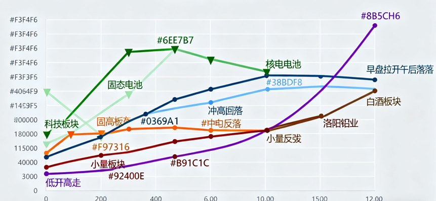 板块方面,今天风格变化还是很大的,牛哥大部分舱位在科技和固态电池上,因此今天也是回撤的,盘前就讲过,稀土、核电这些热们热度过高,一致性过强容易迎来分歧,今天冲高的话最好是先观望,果然今天就是上演冲高回落。风电倒是比较可惜,早盘其实是有一波拉升的,金风科技、大金重工,可惜卡的节点不太好,午后也是被动回落下来,目前板块热度不高,牛哥认为短期还有机会。至于白酒、煤炭等反弹但持续有限。留言区有人多次问到洛阳钼业的走势,牛哥就重点说下,今天也是低开高走,但并非只有它调整,紫金等大票都是这个走势,更多是市场影响,这种容量大票即使见顶还有反复,因此不用担心,延续调整的话,就降点舱位,不用追求卖在最高点。