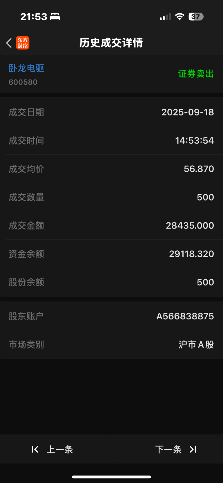 $卧龙电驱(SH600580)$ 32买的,还好高点抛了一半,第二天52抛完了,不然套我到明年